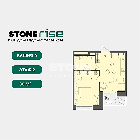 Купить 1к квартиру 46 м² в ЖК Достижение
