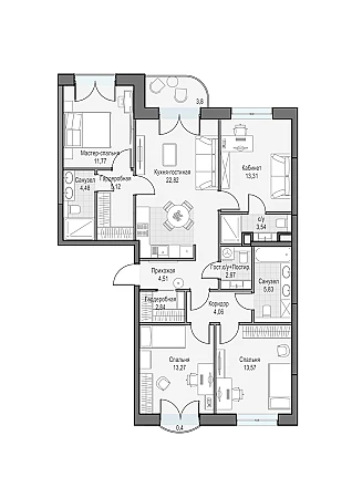 Купить 3к квартиру 109 м² в ЖК Достижение