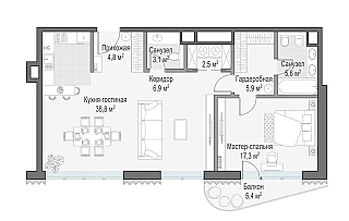Просторная светлая квартира площадью 67 кв. м с окнами, выходящими в тихий приватный двор-парк с живописным ландшафтным дизайном, фонтаном и детской площадкой. Из кухни-гостиной открывается вид на Кремль, а панорамное моллированное остекление делает его по-настоящему зрелищным. Продуманная планировка позволяет разместить кухню-гостиную и спальную комнату с санузлом и гардеробной.