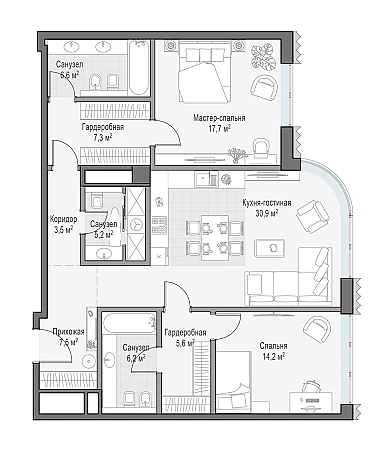 Купить 2к квартиру 104 м² в жилом доме Лаврушинский