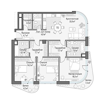 Просторная светлая квартира площадью 123 кв. м. Кухня-гостиная обращена окнами в сторону Кремля, а панорамное моллированное остекление и открытый балкон улучшают видовые характеристики квартиры. Продуманная планировка позволяет разместить две отдалённые друг от друга спальни с отдельными санузлами и гардеробными. Из комнат видны тихий приватный двор-парк с ландшафтным дизайном и исторический особняк Демидова. Окна квартиры выходят на две стороны.