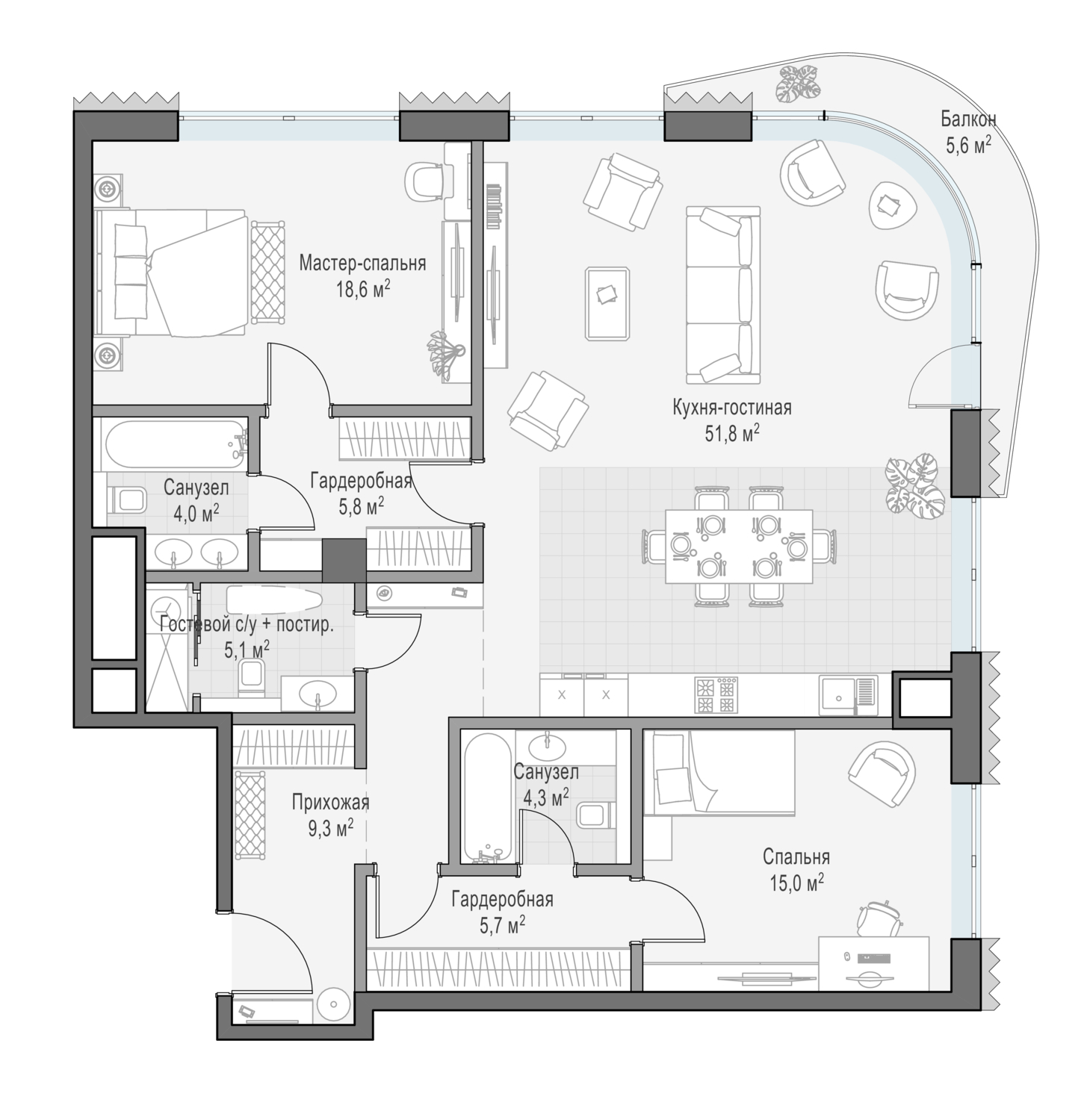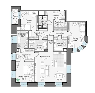 Просторная светлая квартира площадью 121 кв. м с окнами на две стороны. В кухне-гостиной они обращены в направлении Кремля, а панорамное моллированное остекление и открытый балкон улучшают видовые характеристики квартиры. Продуманная планировка позволяет разместить две спальни с отдельными санузлами и гардеробными. Из комнат видны тихий приватный двор-парк с ландшафтным дизайном и исторический особняк Демидова.
