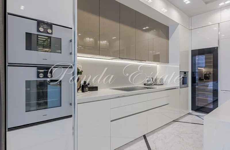 Просторная светлая квартира High Level площадью 200 кв. м. Кухня-гостиная обращена окнами в сторону Храма Христа Спасителя, а моллированное бесшовное остекление улучшает видовые характеристики квартиры. В гостиной предусмотрен дровяной камин, создающий уютную атмосферу загородного пространства. Продуманная планировка позволяет разместить четыре приватные спальные комнаты с отдельными гардеробными и санузлами, в одном из которых, примыкающем к мастер-спальне, предусмотрено окно.