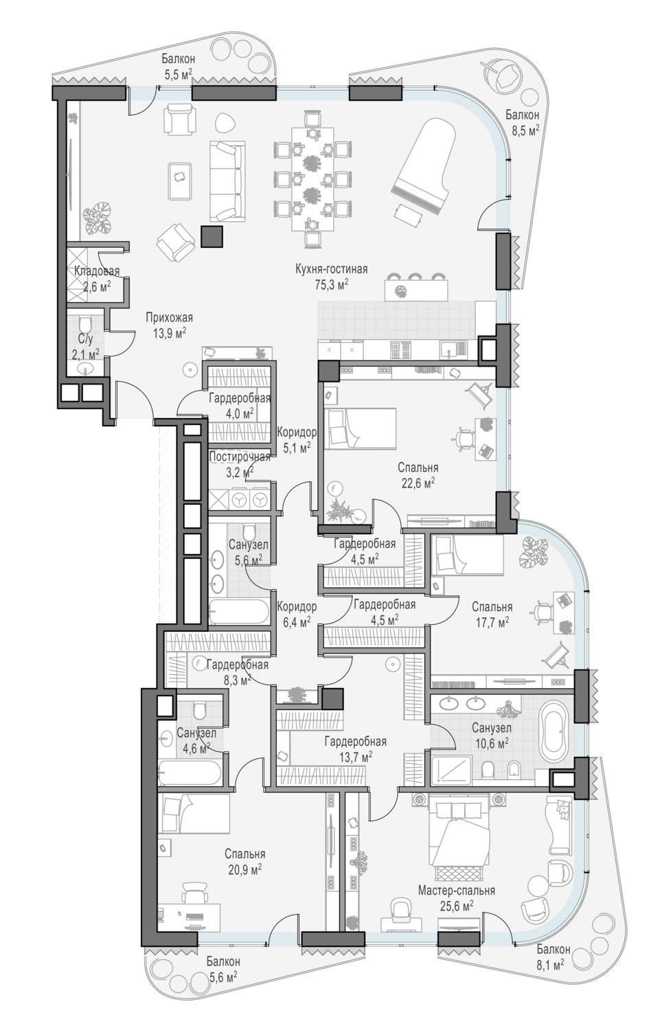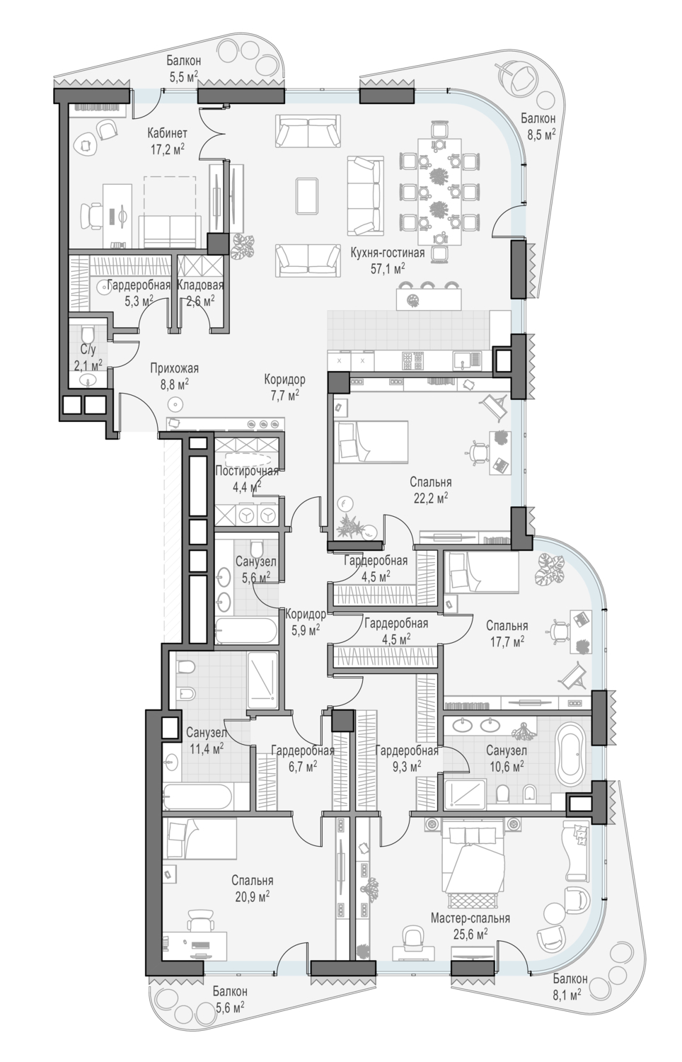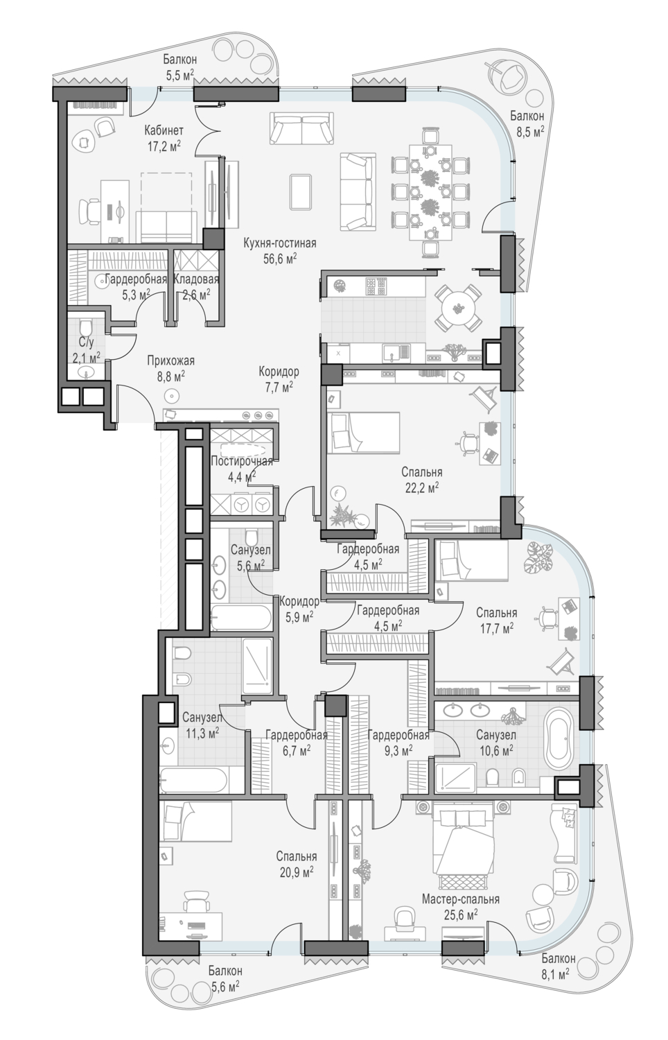 Купить 4к квартиру 211 м² в жилом доме Лаврушинский