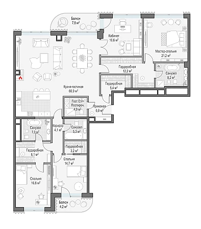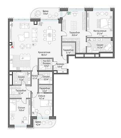 Купить 3к квартиру 204 м² в жилом доме Лаврушинский