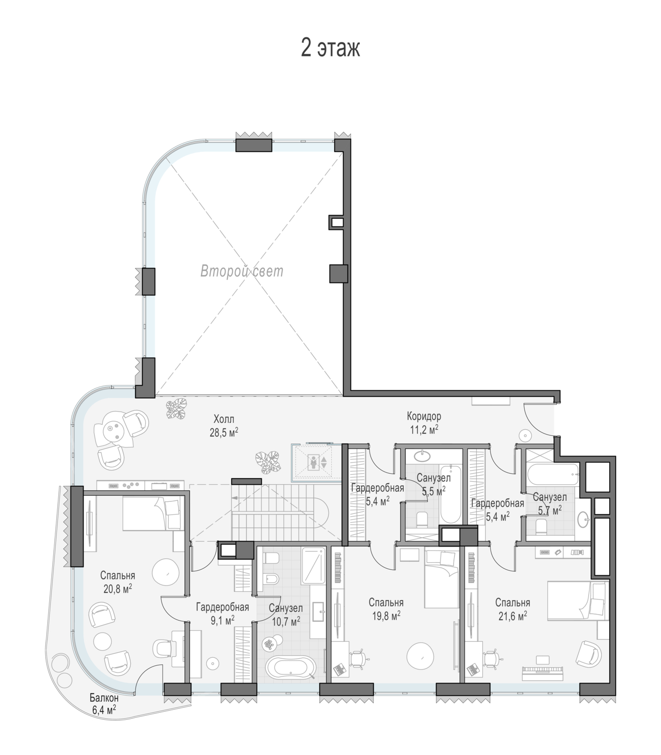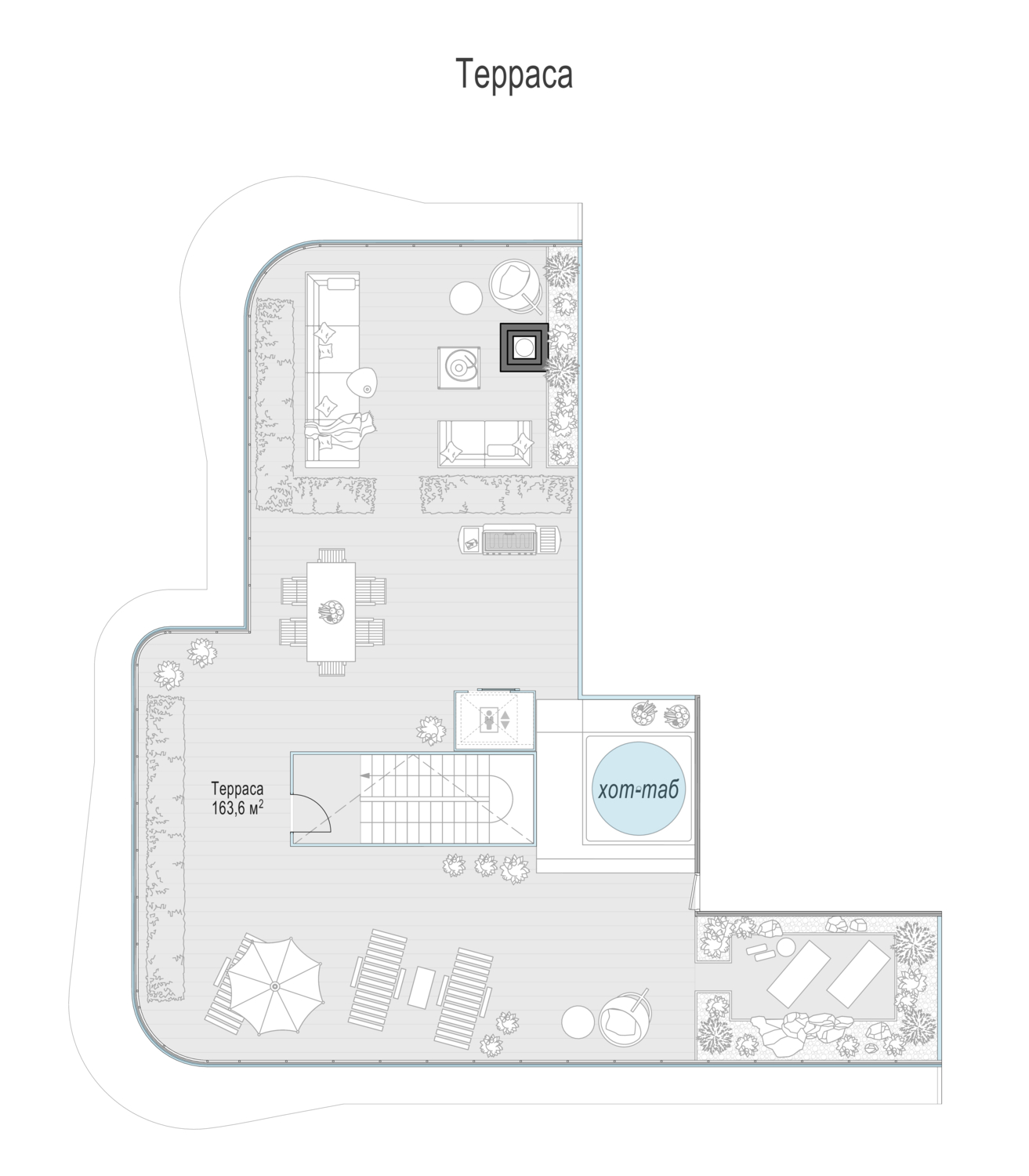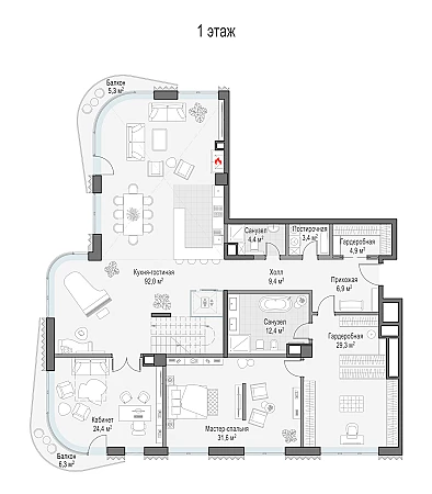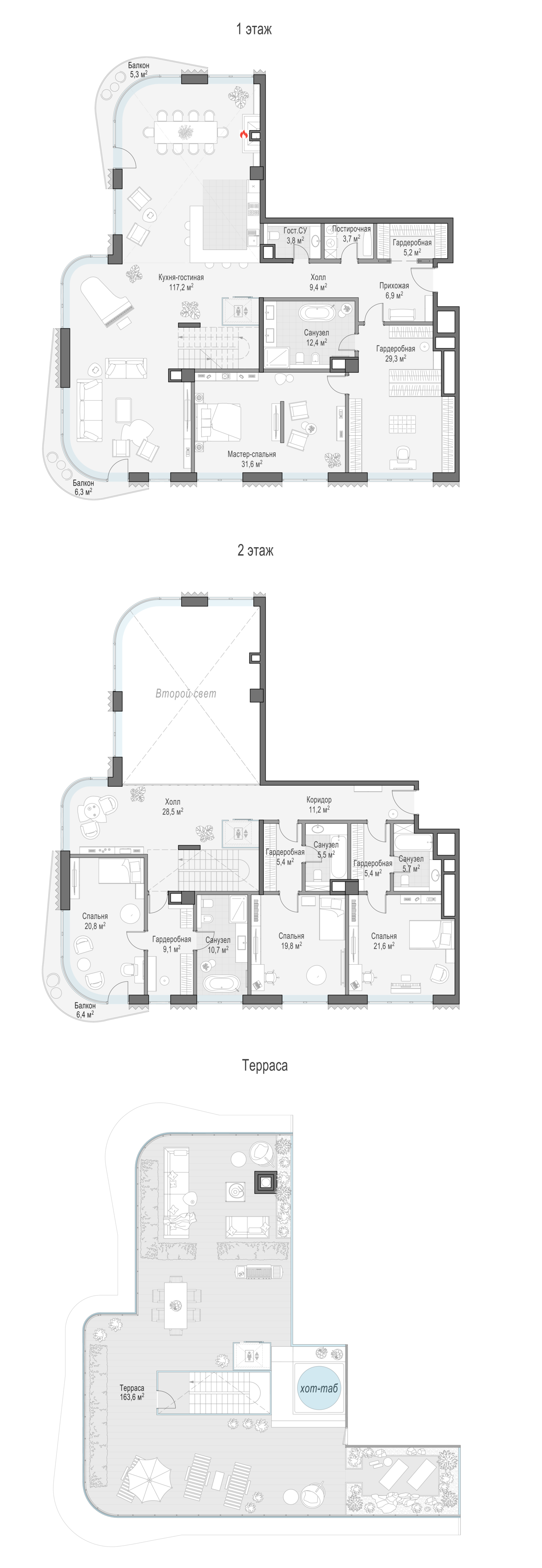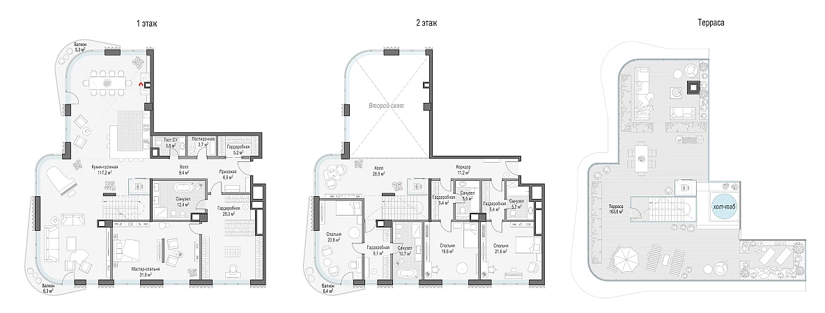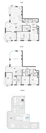 Просторный светлый пентхаус площадью 365 кв. м с террасой (163 кв. м). Высота потолка в кухне-гостиной составляет 8 метров — это пространство со вторым светом. Отсюда открывается роскошная панорама старинной Москвы — вы можете подняться на собственную террасу на крыше и любоваться городом с личной смотровой площадки! Четыре балкона, три эркера, большие панорамные окна, расположенные с северной, западной и южной сторон, улучшают видовые характеристики пентхауса, а в гостиной есть возможность установить настоящий дровяной камин.