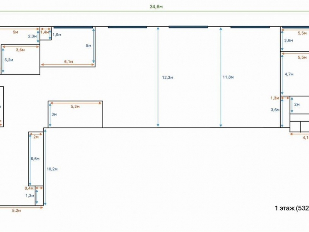 . - 1 этаж: 532 м² (производственная зона с возможностью переоборудования под офис)