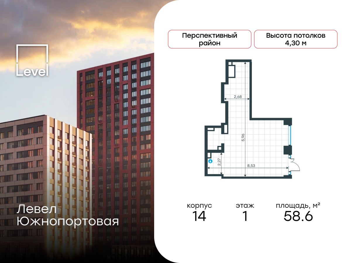 Продаётся помещение свободного назначения площадью 58.6 кв. м. в новостройке Левел Южнопортовая по адресу Москва, ЮВАО, Печатники, жилой комплекс Левел Южнопортовая, 14. Помещение со свободной планировкой. Окна с видом во двор. Высота потолков 5.30 м. Отдельный вход со двора. Стоимость помещения — 42 952 669 руб. Способы оплаты и более подробная информация по телефону.