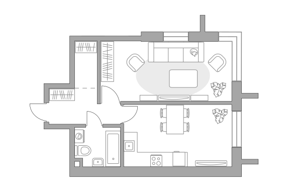 Жилая площадь 17.16 м2, кухня 14.9 м2, черновая отделка, комнаты изолированные, окна выходят на улицу.