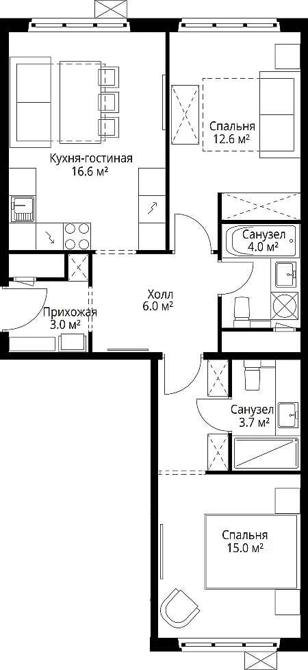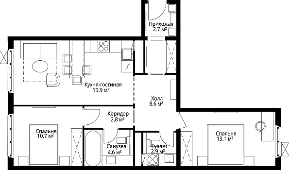 Купить 3к квартиру 56 м² в ЖК Ильинойс