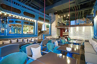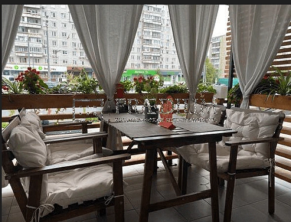Просторная площадь на первом этаже с отдельным входом, витриной и летней верандой привлекает внимание потенциальных клиентов.