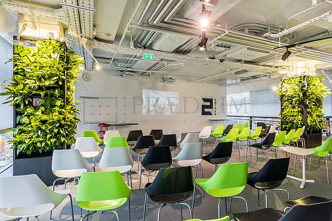 Планировка - open space. Приточно-вытяжная вентиляция. Центральное кондиционирование. Пожарная сигнализация. Интернет, телефония. Охрана. Видеонаблюдение. Система контроля доступа. Лифты: 5, KONE. Подземная парковка. Наземная парковка.