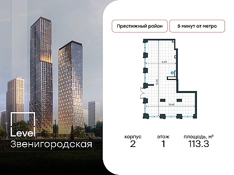Уважаемый Покупатель, предлагаем Вам приобрести в ЖК "Level Мичуринский" помещение свободного назначения 95.6 м² на 1 этаже в собственность на выгодных условиях.