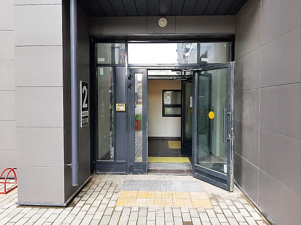 Монолитно-кирпичный дом бизнес класса с подземным паркингом. Придомовая территория огорожена, организован КПП, ведется круглосуточное видеонаблюдение. Металлические подъездные двери оснащены домофонами. Во входных группах предусмотрены помещения для консьержа и колясочные. На первых этажах магазины, пекарня, стоматология, салон красоты.На придомовой территории размещены детские и игровые площадки, площадки для отдыха и спорта. Озелененная придомовая территория, высажены деревья, кустарники, разбиты газоны и цветники.