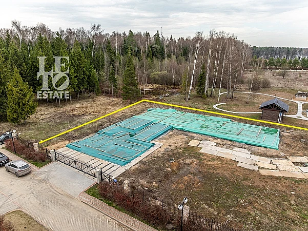 На участке уже заложен фундамент под строительство одноэтажного дома 700 кв. метров, с полным комплектом проектной документации и результатами экспертизы качества бетона и армирования. Фундамент находится в состоянии консервации, соответствующем всем строительным нормам. Вместе с участок будет предоставлен полный проект деревянного дома с стиле хайтек (проект - призёр конкурса "Деревянные дома"), проекты интерьеров части помещений, проект ландшафта от одного из лучших бюро, а также оборудование канального кондиционирования LG на весь дом, индивидуально изготовленные для проекта двери и витражи Shuko.