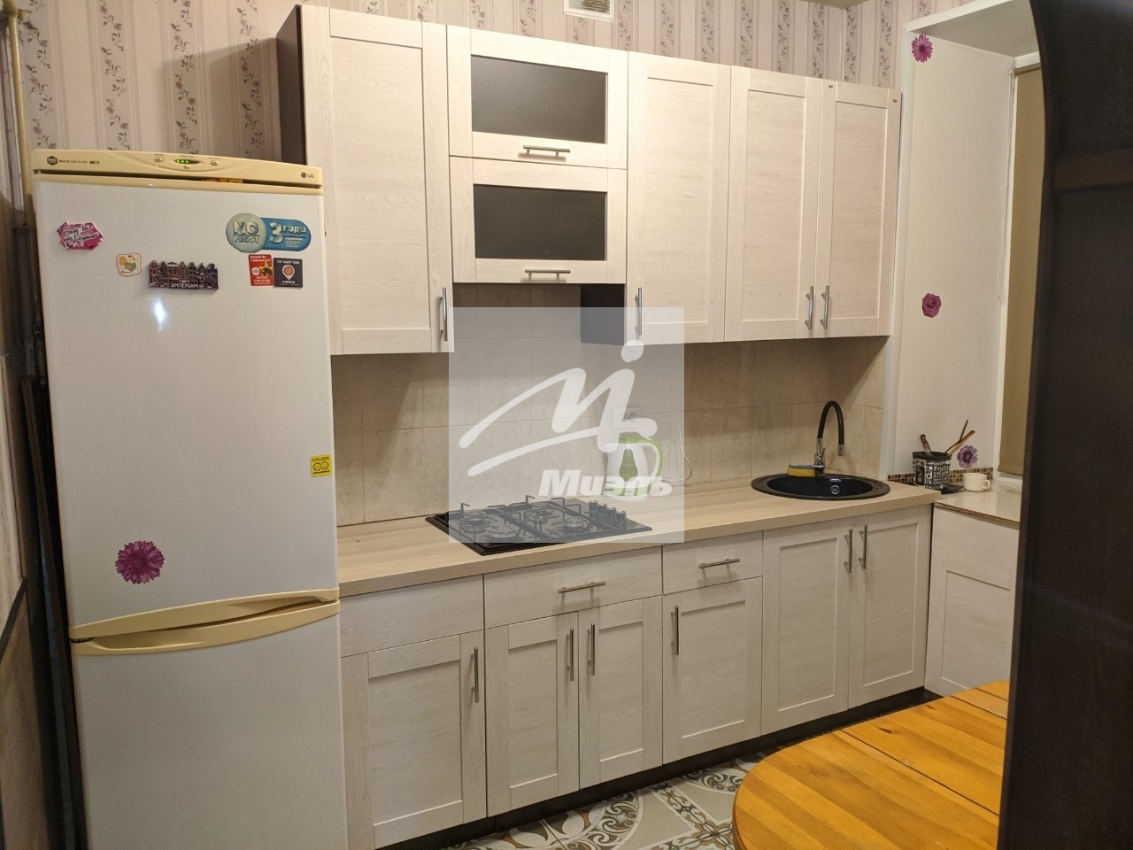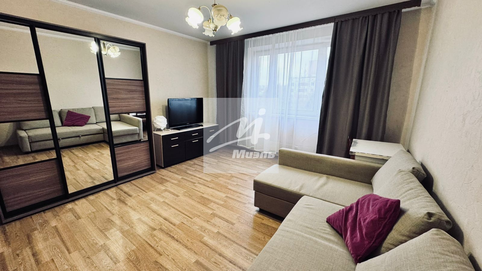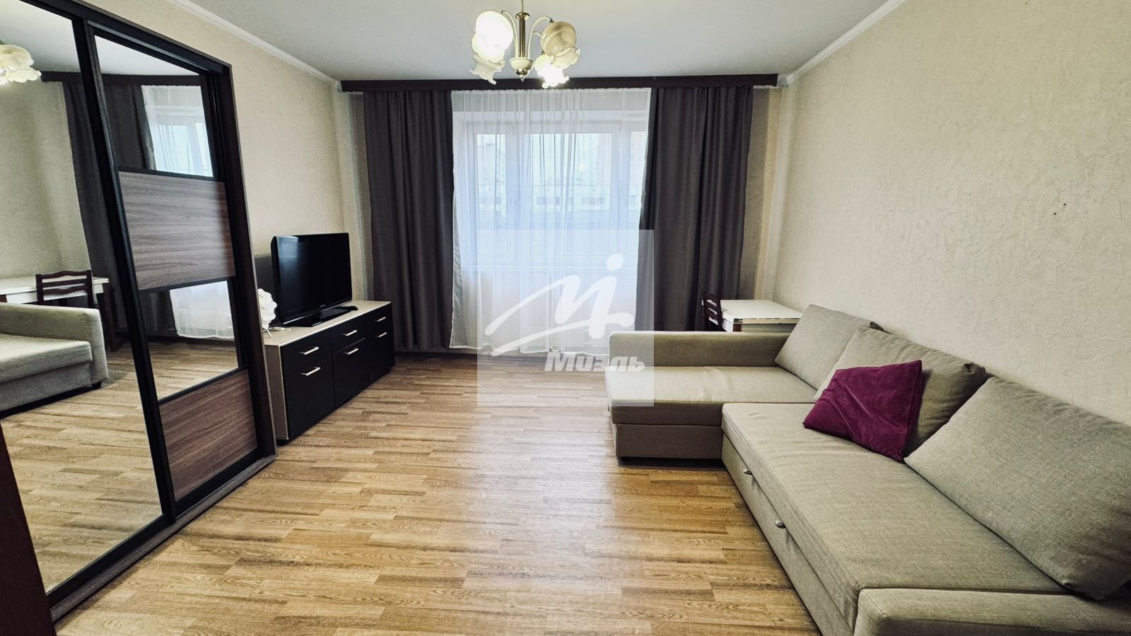 Кухонный гарнитур со всей необходимой мебелью. Диван раскладной, кровать двухспальная.