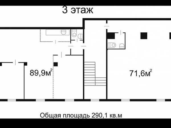 . Общая площадь 290м2, третий этаж без лифта, есть своя кухня и свои с/у, стандартный офисный ремонт. В здании приточно-вытяжная вентиляция, сплит-системы кондиционирования.