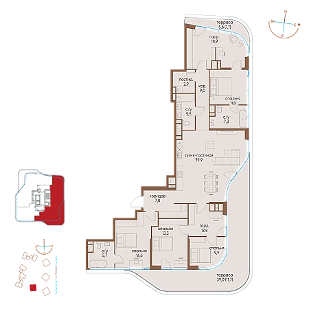 Предлагается уникальная 4-х комнатная квартира в ЖК "Триумф-Палас".