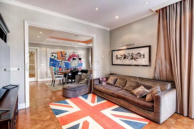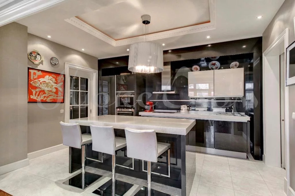 Дизайн квартиры сделан в светлых тонах, качественный ремонт, квартира ухоженная. Дорогая мебель и техника европейских производителей - все остается. Высота потолка - 3,2 м.