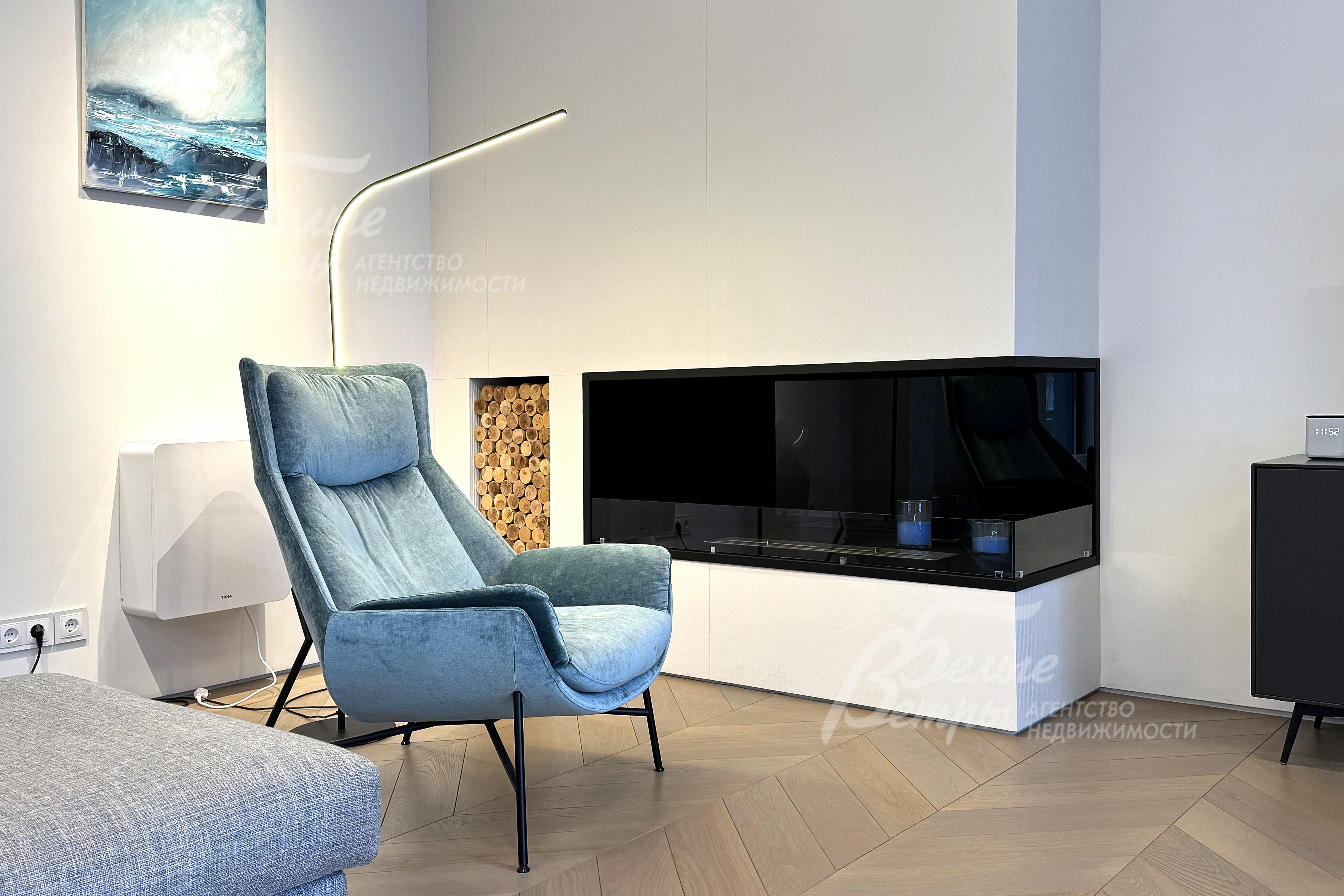 Внутренняя отделка: в доме выполнена стильная современная отделка под ключ с использованием элитных материалов. Стены оштукатурены, окрашены матовой моющейся краской Sherwin-Williams (США). На полу в жилых комнатах - инженерная дубовая доска LuxuryTree, Дуб Кавказский, Селект-Прайм, покрытая матовым лаком Silver Grey, на кухне и в санузлах – крупноформатный ректифицированный керамогранит PORCELANOSA (Испания) и керамогранит ITALON (Италия). Установлены внутрипольные конвекторы с эффектными деревянными решетками. Потолки отделаны гипсокартоном на профиле, окрашены. Установлен биокамин LuxFire (Россия), выполнено качественное встроенное и трековое освещение (Стильный Свет, Россия). На второй этаж ведёт широкая удобная монолитная лестница, ступени из инженерной доски со шпоном дуба, ограждение из закаленного осветленного стекла (Crystalvision - Япония). Установлены двери современного дизайна скрытого монтажа, окрашенные в цвет стен, подоконники из кварцевого агломерата, розетки и выключатели EFAPEL (Португалия).