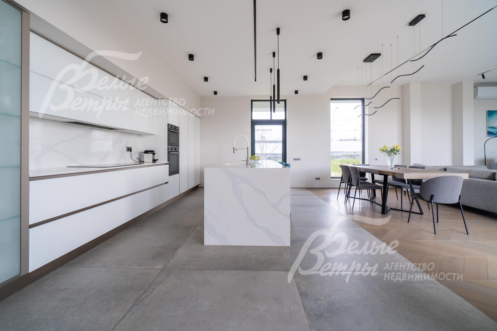 Стильный новый дом под ключ! 333 кв.м в духе архитектуры хай-тек в коттеджном поселке премиум класса Райт Вилладж. Дом с несущим монолитным каркасом, заполненным кирпичом, панорамным остеклением, высокими потолками готов к заселению: отделан элитными материалами, обставлен европейской мебелью. Функциональная планировка включает в себя:единое пространство кухня-столовая-гостиная, 5 спален, одна из которых на 1-м этаже, 5 санузлов, террасы. Установлен биокамин, сделано качественное трековое и встроенное освещение. Участок 16 соток с ландшафтным дизайном, плодовыми и декоративными деревьями, большой солнечной поляной. Элитный коттеджный посёлок, выстроенный в едином стиле, со всеми центральными коммуникациями, строгой охраной, инфраструктурой городского типа и великолепными природными пейзажами.В поселке открыт ресторан ПРЕРИЯ, супермаркет, аптека, есть прогулочные зоны с водоемом и фонтанами, спортивные площадки, в ближайшее время будет открыт детский сад Stay and Play. В поселке началось строительство большого спортивного комплекса (фитнес клуб с бассейном, площадки для футбола/баскетбола, пляжного волейбола, катка)