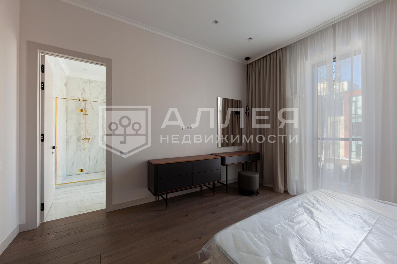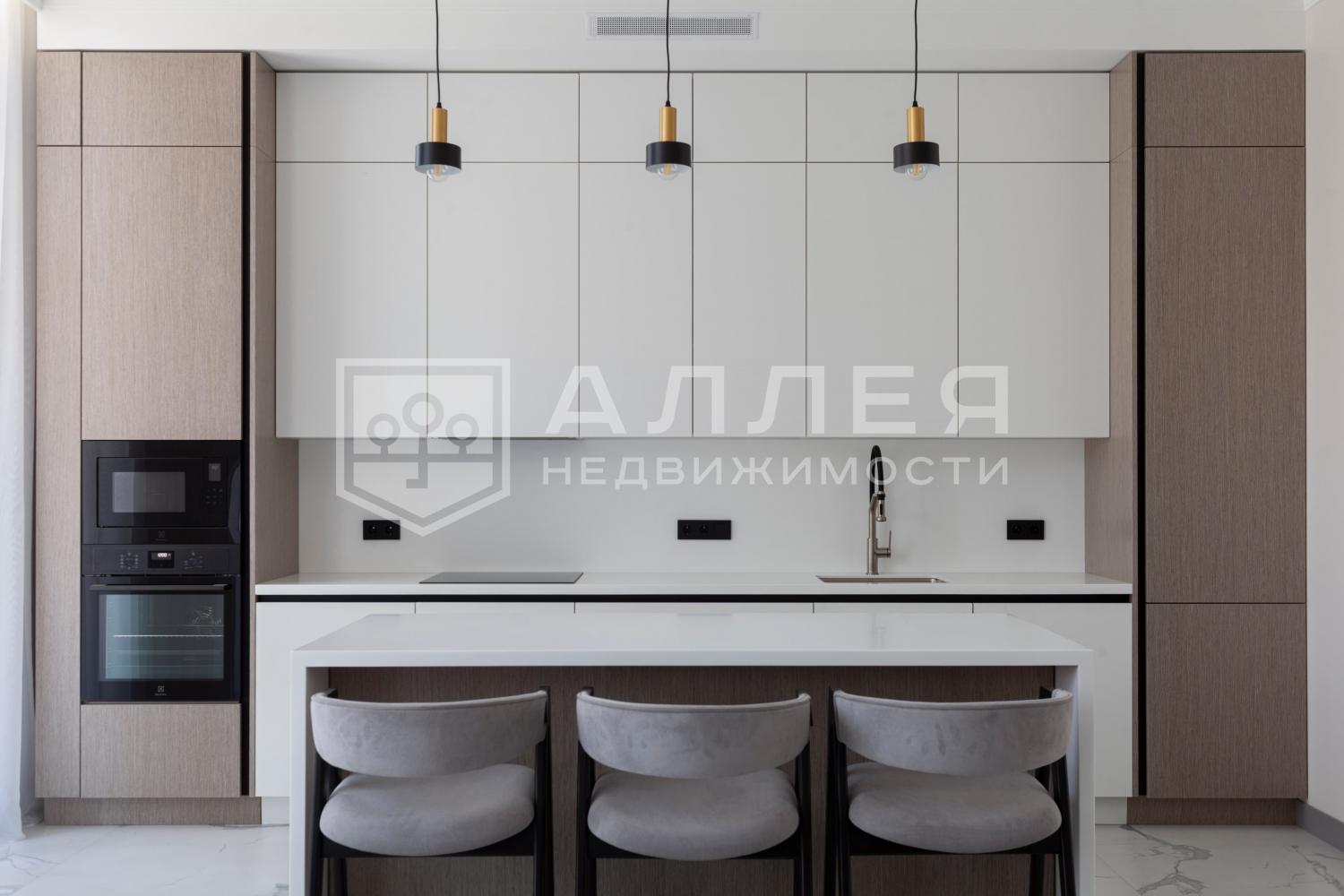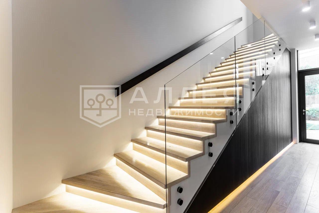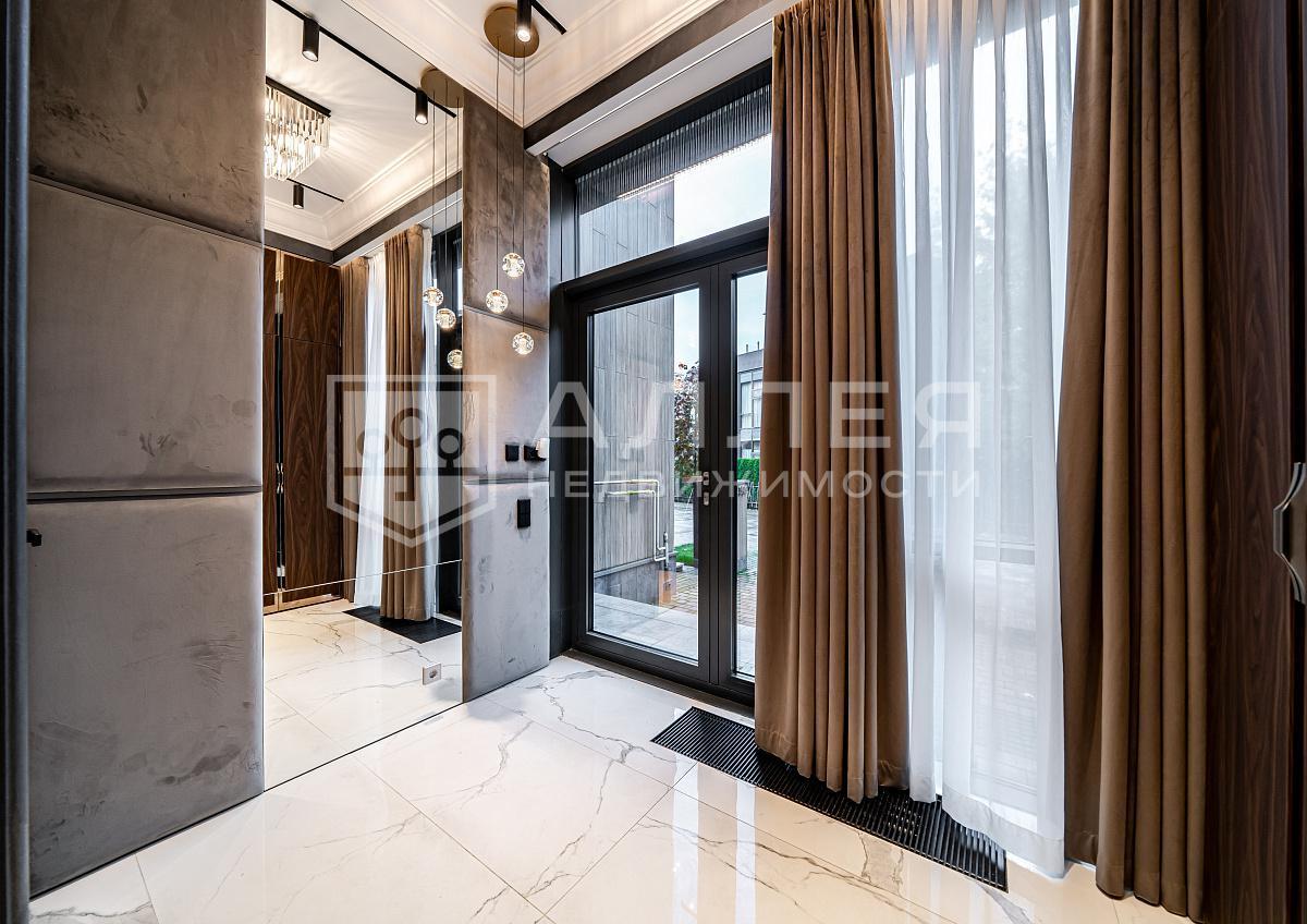 Современный четырехуровневый таунхаус с высокими потолками и продуманной планировкой. Дом меблирован, выполнен дизайнерский ремонт. В доме предусмотрена просторная терраса, гостиная с камином, 4 спальни с видами на посёлок.