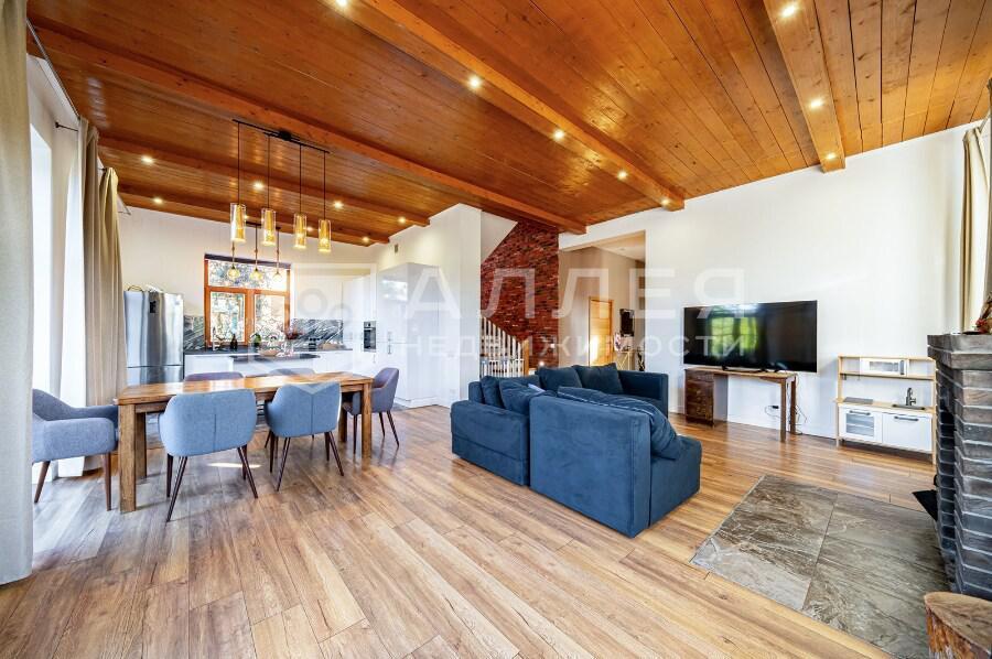 Современный стильный дом под ключ в охраняемом коттеджном посёлке. Дом меблирован и готов к проживанию. Планировкой предусмотрено 4 спальни, одна из которых находится на первом этаже. Есть помещения свободного назначения. Для комфортных и уютных вечеров загородом предусмотрен камин в гостиной дома и летняя терраса примыкающая к дому.