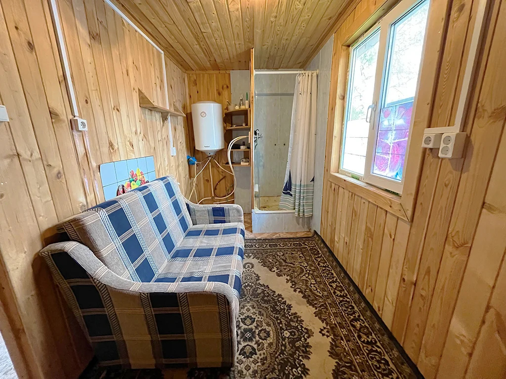 1) Дом 2х этажный каркасный, утепленный с просторной терассой, двумя изолированными комнатами. В дом заведено водоснабжение от летнего водопровода, установлена душевая, бойлер для горячего водоснабжения.