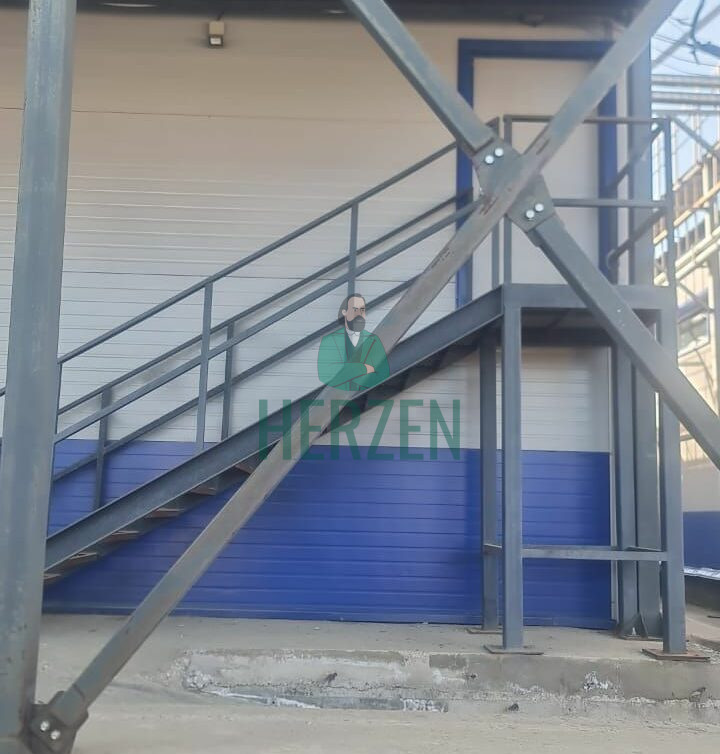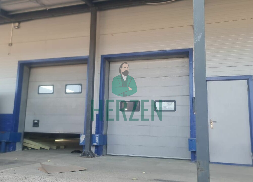Подъёмно-секционные ворота на пандусе с выравнивающими платформами