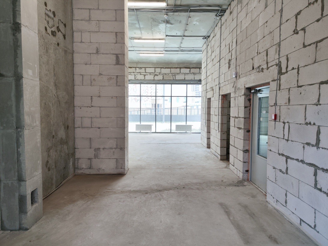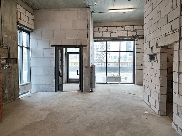 Объект находится на первом этаже и отлично просматривается с улицы. Вокруг плотный жилой массив, за счет чего обеспечивается интенсивный автомобильный и пешеходный трафик. В помещении нет ремонта. Высокие потолки, витражное остекление.