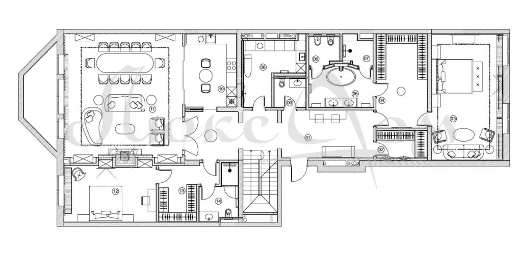 1 уровень - жилая зона: большая кухня-гостиная с просторной лоджией, виды с которой открываются на 1 из башен Кремля, гостевая спальня, 3 большие гардеробные, 1 или 2 мастер спальни с с/у и видом на тихий ухоженный двор Посла Велекобритании.