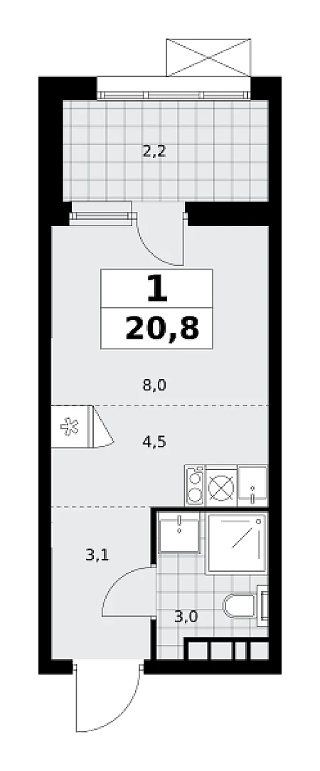 Квартира располагается на 15 этаже 25-этажного дома в ЖК Пехра.