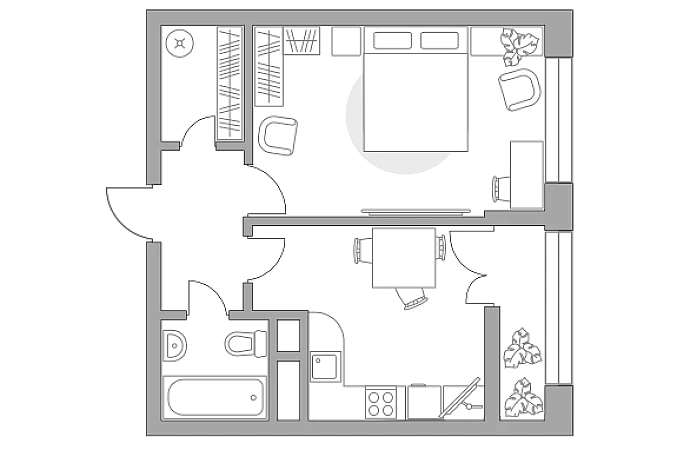 Жилая площадь 15.74 м2, кухня 11.13 м2, чистовая отделка, комнаты изолированные, лоджий - 1, окна выходят на улицу.