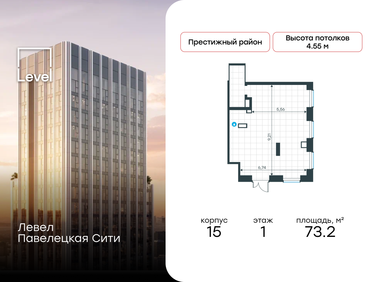 Продаётся помещение свободного назначения площадью 73.2 кв. м. в новостройке Левел Павелецкая Сити по адресу Москва, ЮАО, Даниловский, ул. Дубининская, вл. 69, корп. 15. Помещение со свободной планировкой. Окна с видом во двор и на улицу. Высота потолков 4.55 м. Отдельный вход со двора. Стоимость помещения — 40 050 638 руб. Способы оплаты и более подробная информация по телефону.