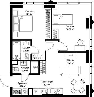 Купить 1к квартиру 43 м² в апарт-комплексе SLAVA (Слава)