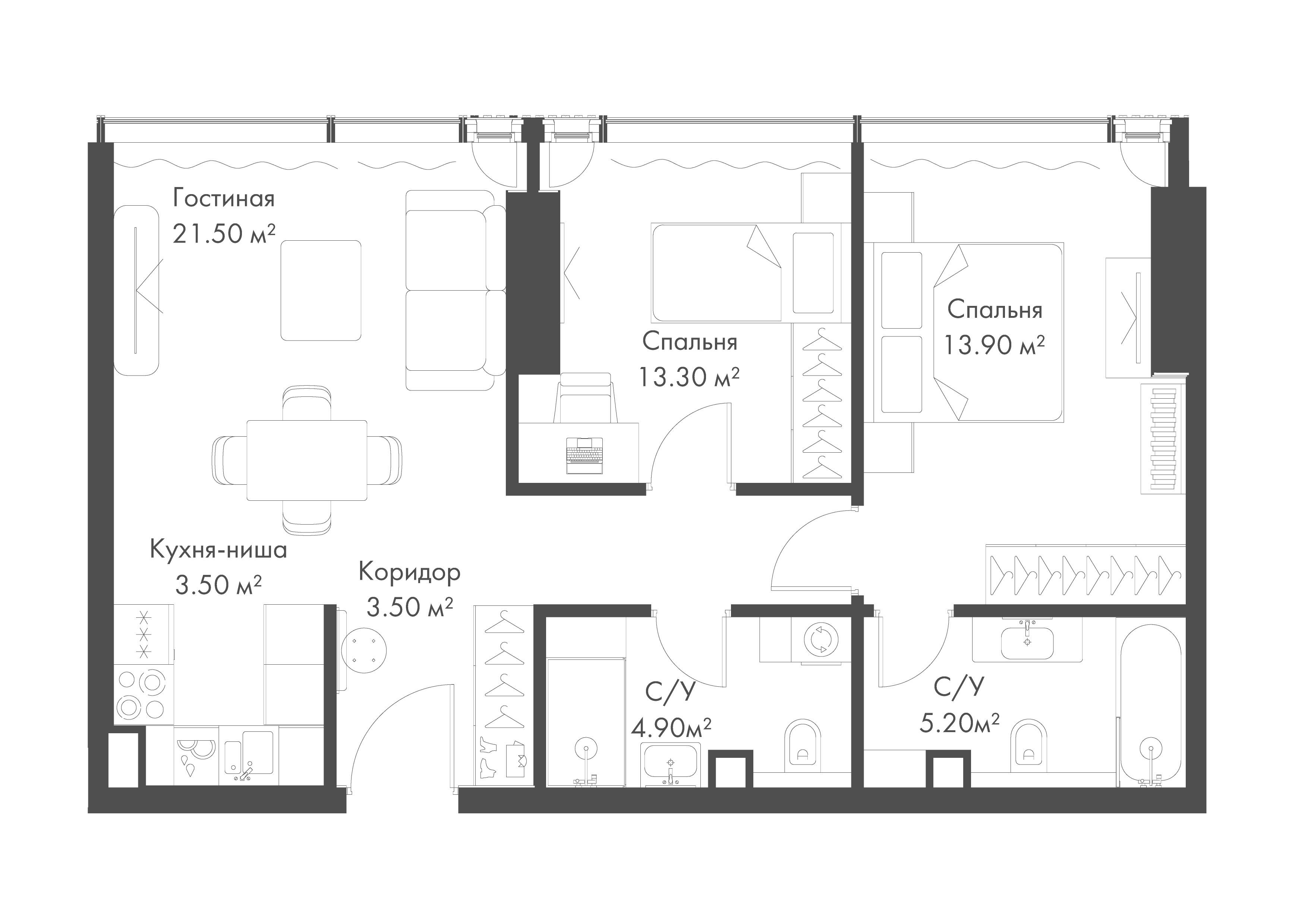 Купить 1к квартиру 48 м² в апарт-комплексе SLAVA (Слава)