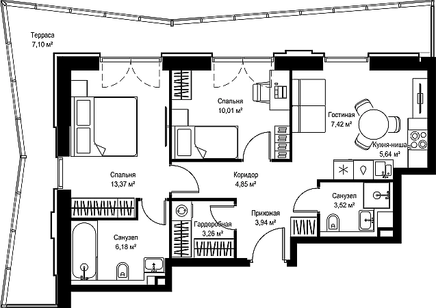 Купить 2к квартиру 65 м² в ЖК Селигер Сити