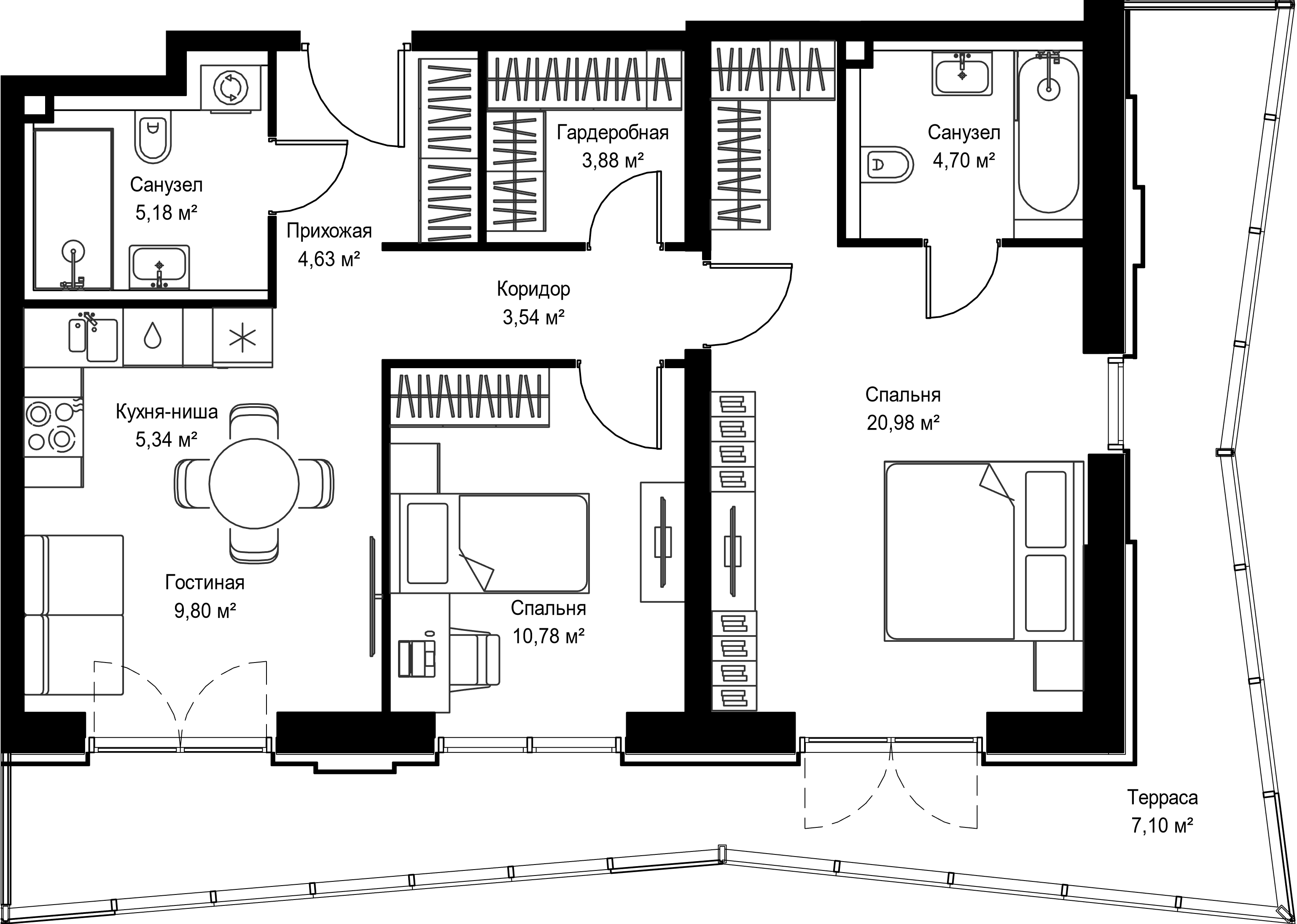 Купить 2к квартиру 76 м² в ЖК Селигер Сити