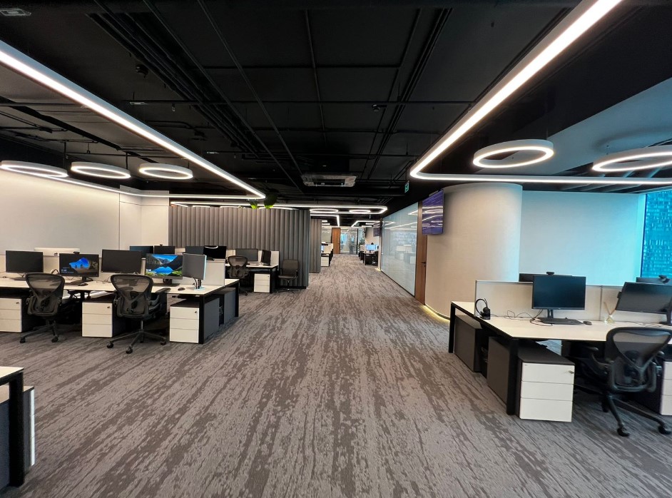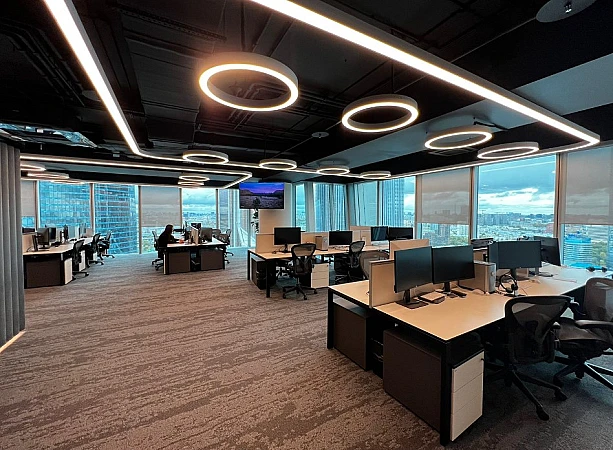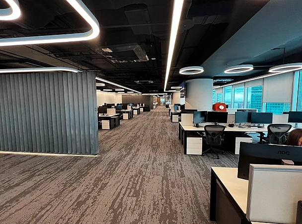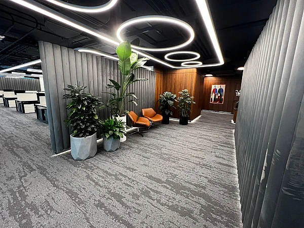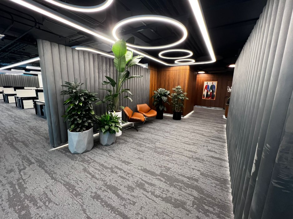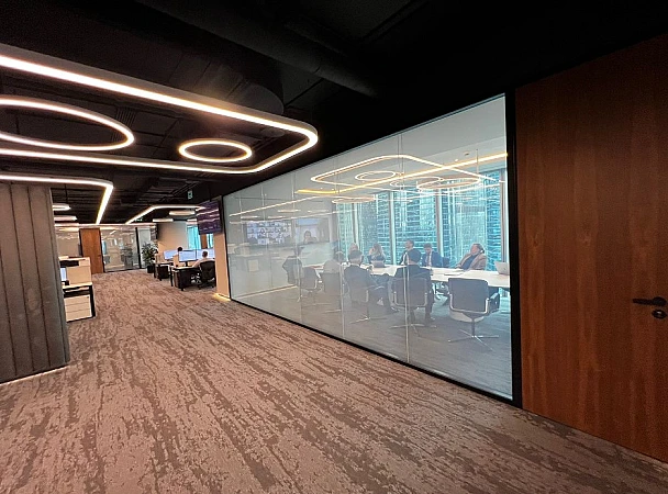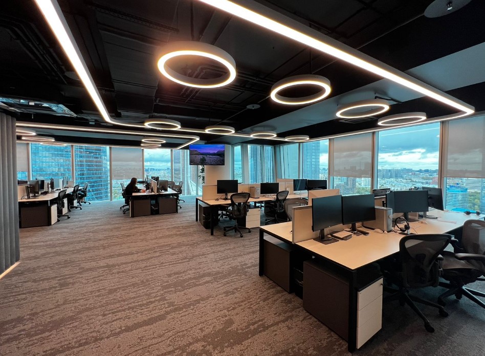 Выполнена дорогой дизайнерский ремонт. Оборудованные переговорные комнаты, оборудованная кухня, зоны отдыха, санузлы с душевой кабиной.