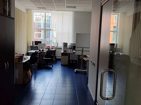 Освобождение 1 месяц. Отдельный вход. Этаж: 1. Планировка: кабинетная ( коридорная ). Офисная отделка. Тип налогообложения: С НДС. Эксплуатационные платежи и коммунальные оплачиваются отдельно.