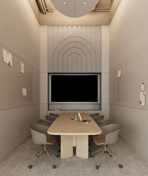 Офис оснащен современной мебелью для различных функциональных зон - уютные лаундж-зоны, изолированные переговорные кабинки, стойка ресепшн во входной группе, а также практичные системы хранения.