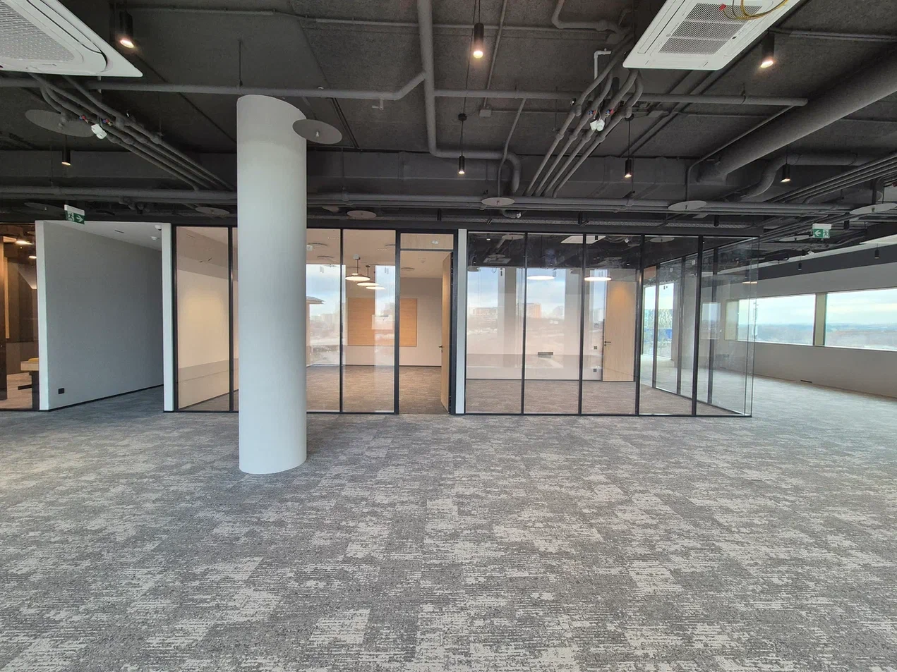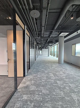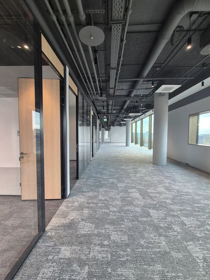 На каждом этаже есть зона ресепшн и отдыха, переговорные комнаты, выделенные кабинеты, кухня, санузлы, гардеробная, серверная.