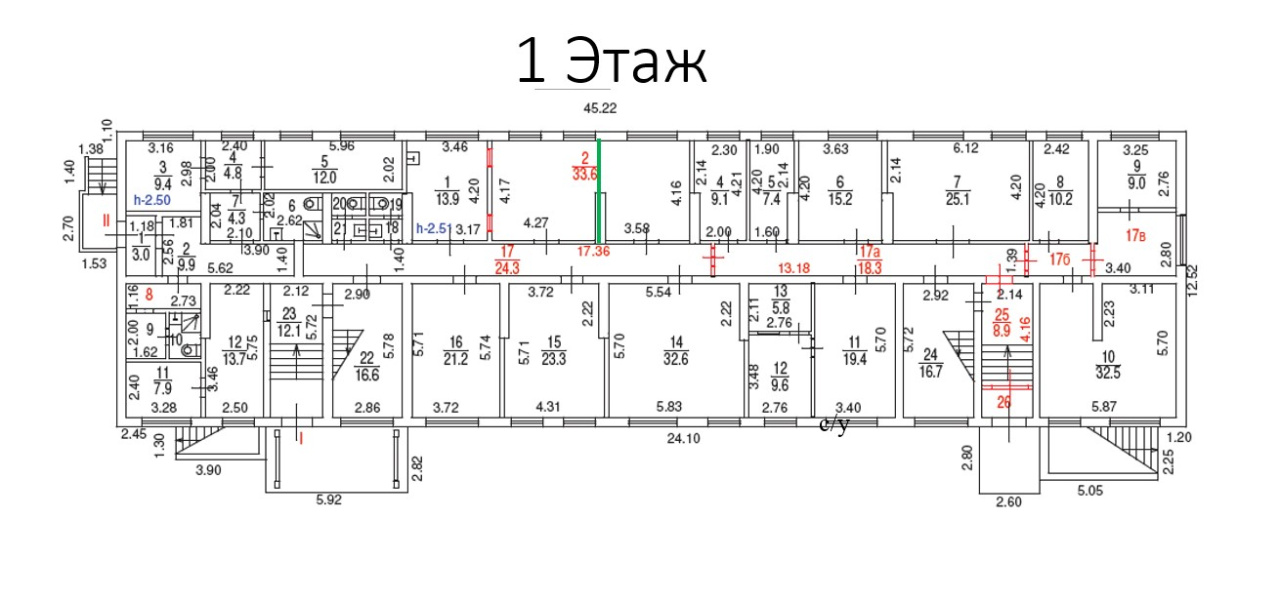 В здании 3 отдельных входа. Центральные коммуникации. Отдельный вход. Этаж: 1. Планировка: кабинетная ( коридорная ). Требуется косметический ремонт. Подходит под: гостиницу. Высота потолка: 2.6м. Тип налогообложения: С НДС. Налоговая: 43. Лифты: Нет. Вентиляция: Приточно-вытяжная. Кондиционирование: Сплит-системы. Безопасность: Круглосуточный доступ, Контроль доступа, Система пожаротушений, Видеонаблюдение. Провайдеры: . Парковка: Наземная. Лот 57744-125