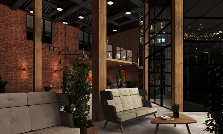 Выполнена отделка в современном стиле Лофт. Светодиодное освещение. Установлены двойные стеклянные перегородки.