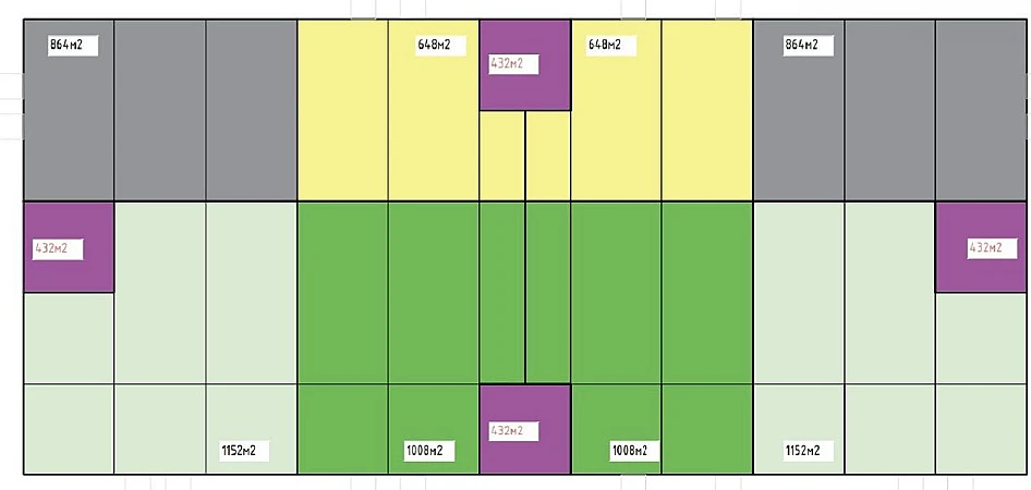 Общая площадь 3 этажа 432 м2.