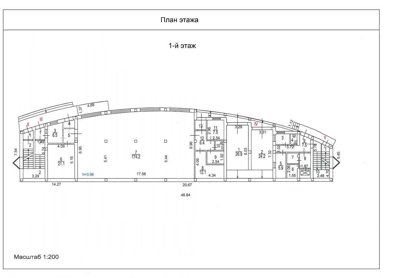 1 этаж – 367,8 м2, высота потолков - 3,96 м.