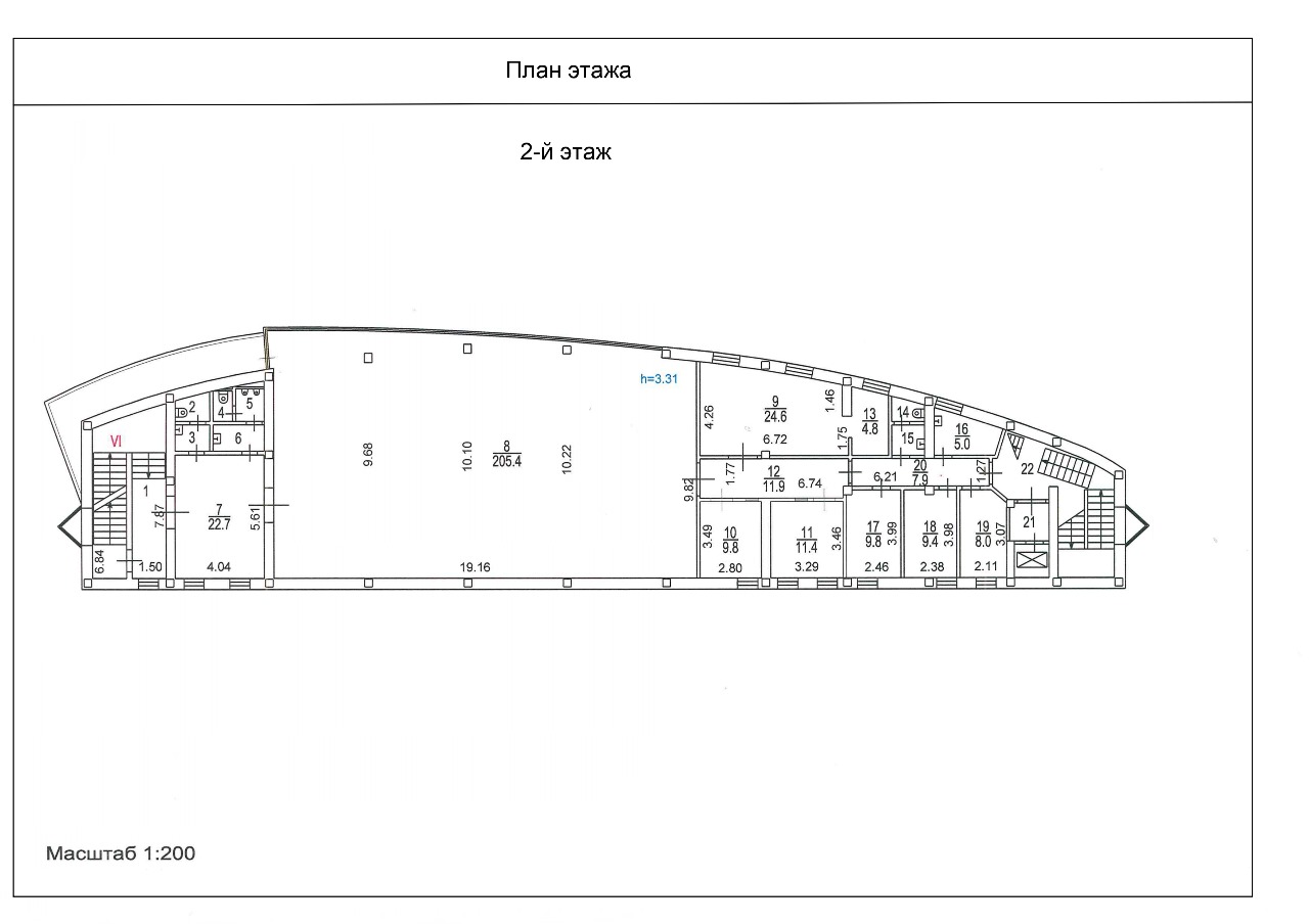 2 этаж – 378,7 м2, высота потолков - 3,31 м.