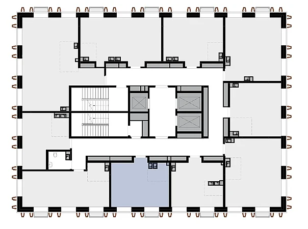 В стилобате размещаются торговые площади под магазины, рестораны, кафе. Будет организована зона коворкинга с разноуровневыми пространствами — от маленьких переговорных комнат до больших конференц-залов.