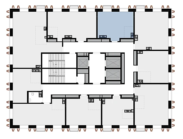Появится также креативное выставочное пространство для проведения презентаций продуктов, клиентских и корпоративных мероприятий. На подземной парковке — 228 комфортных машино-места, в том числе 10 гостевых. Есть зарядные станции для электромобилей. Предусмотрена зона для высадки гостей и такси.