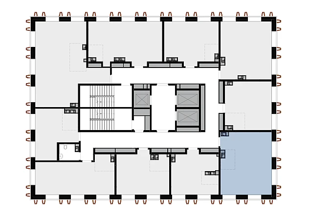 В стилобате размещаются торговые площади под магазины, рестораны, кафе. Будет организована зона коворкинга с разноуровневыми пространствами — от маленьких переговорных комнат до больших конференц-залов.